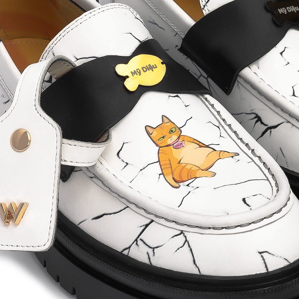 Nhằm tri ân những giá trị nhân văn từ nhân vật mỹ diệu và truyền cảm hứng từ Vitamin Mèo, The Wolf đã đưa nhân vật mèo Mỹ Diệu lên sản phẩm THE WOLF CHUNKY LOAFER , thể hiện những chi tiết đặc trưng của nhân vật như: