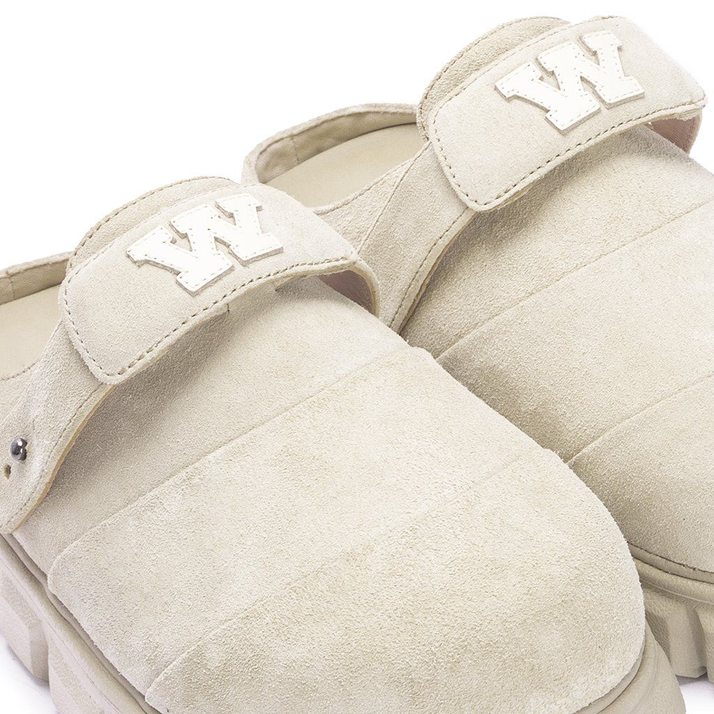 - Logo W Signature được may da thủ công trên quai giày.