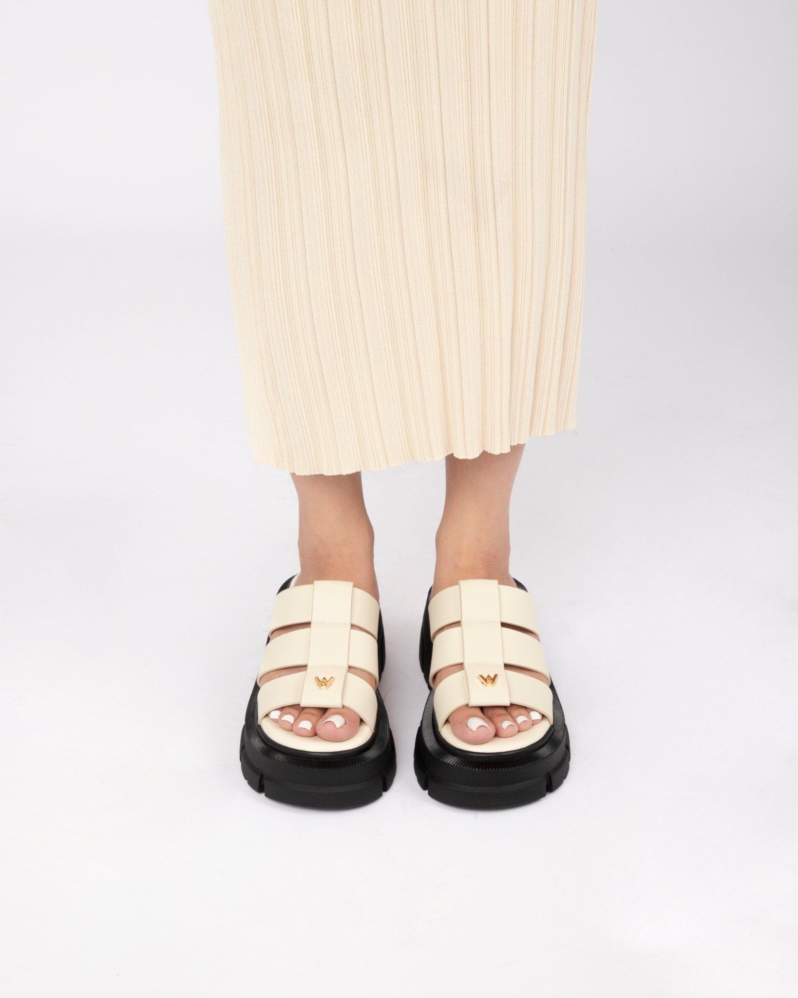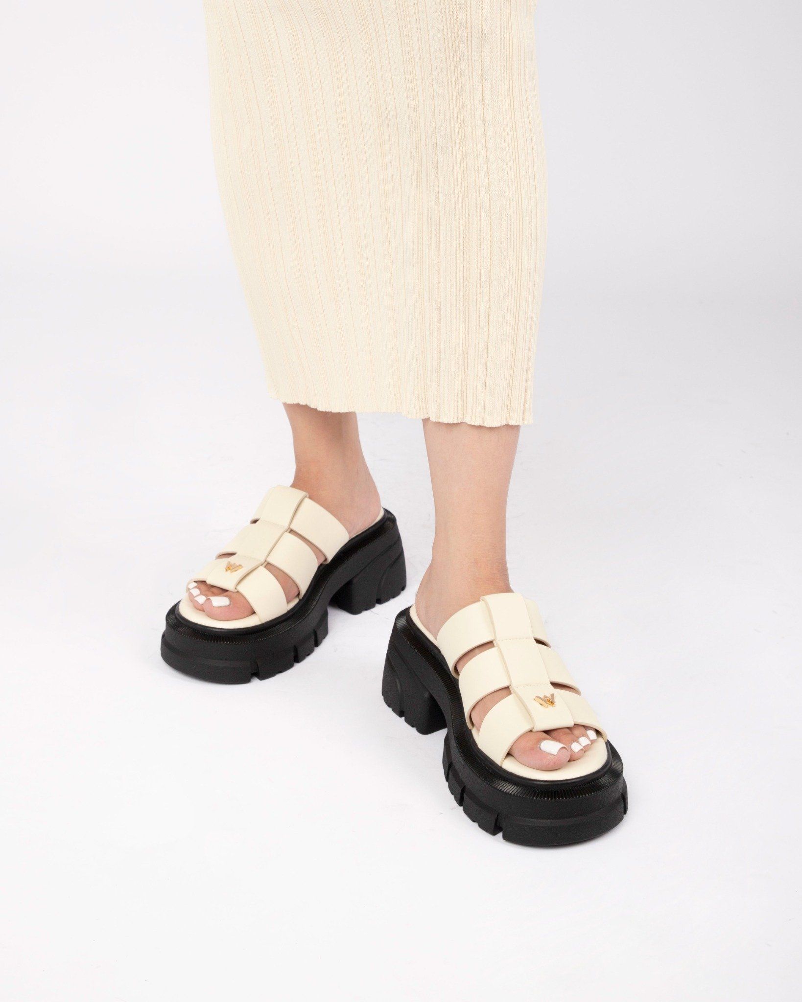 THE QUEEN WOLF CAGE SANDAL - CREAM WHITE