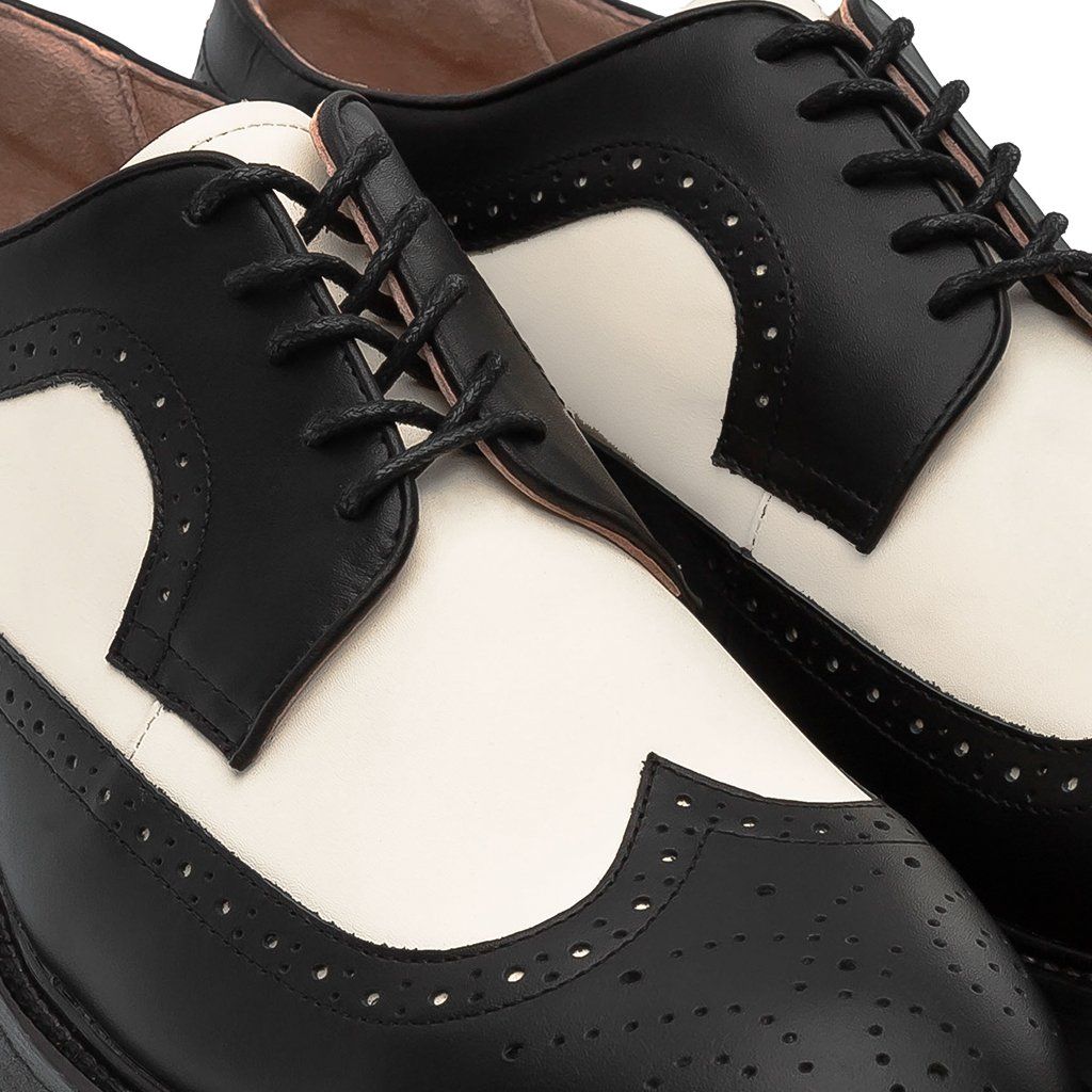 THE SEAN LADY WOLF BROGUE DERBY - BLACK OFF WHITE
