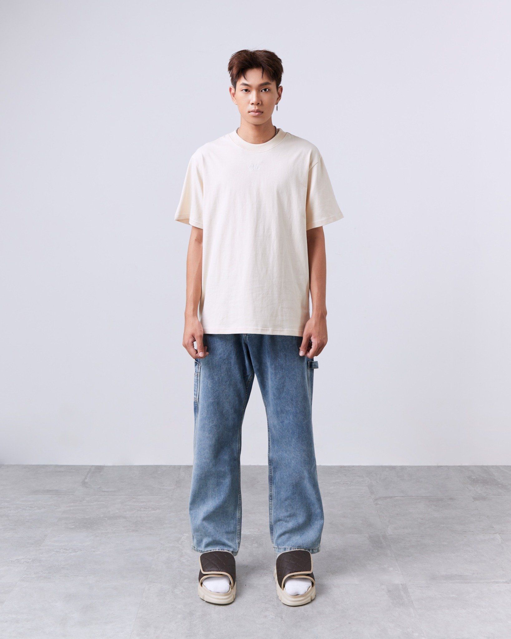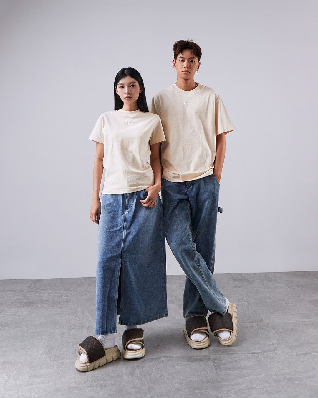THEWOLF ESSENTIAL MONOGRAM SLIDE SANDAL - BROWN BEIGE