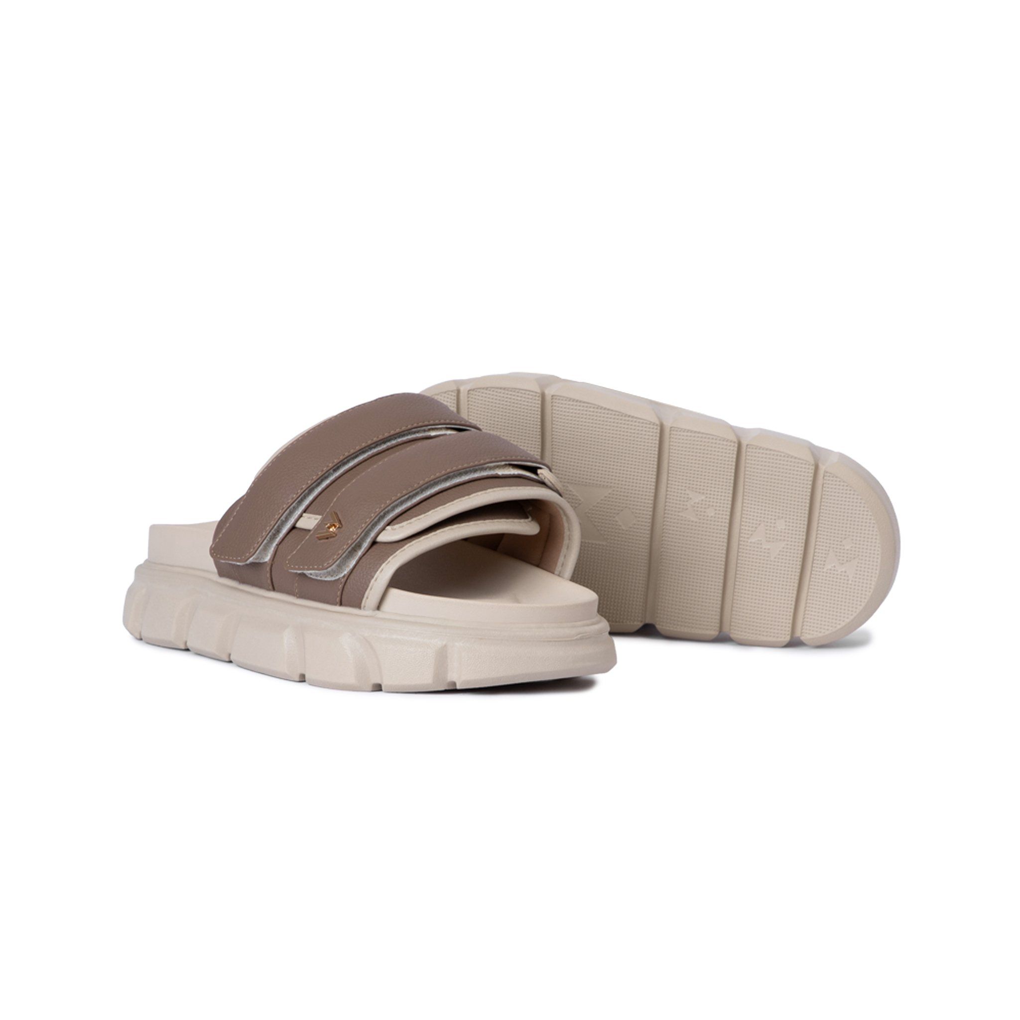 THEWOLF ESSENTIAL STRAP SLIDE SANDAL - BROWN & BEIGE